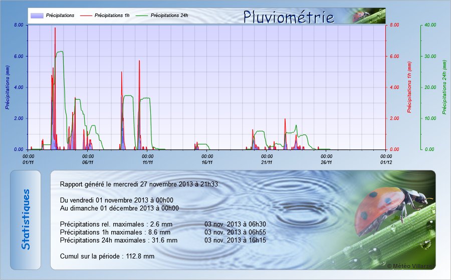 Attention, les données météo publiées sur ce site sont issues d'une station météo personnelle et sont données qu'à titre indicatif, elles ne peuvent en aucun cas être utilisées pour garantir la protection des personnes ou de biens quelconques.